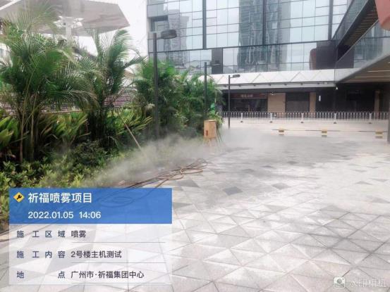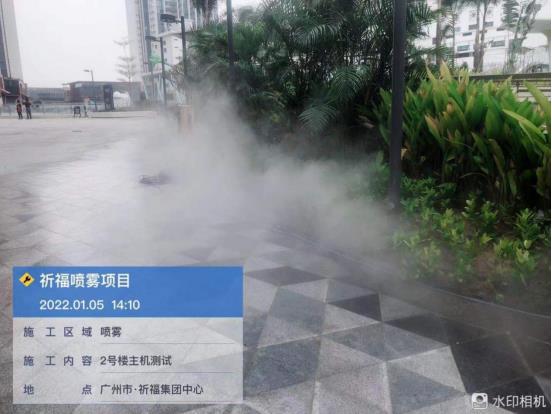 近日,由我司廣州中鵬康體設(shè)備有限公司承建的祈福新邨繽紛匯二期名望天下項目水降溫噴霧及室外園林水景設(shè)備工程通過竣工驗收,該項目水降溫噴霧工程范圍有:天橋噴霧、綠化噴霧、排水溝噴霧、地面噴霧燈、電氣控制系統(tǒng)等設(shè)備;室外園林水景工程范圍有:互動鏡面水景等設(shè)備。